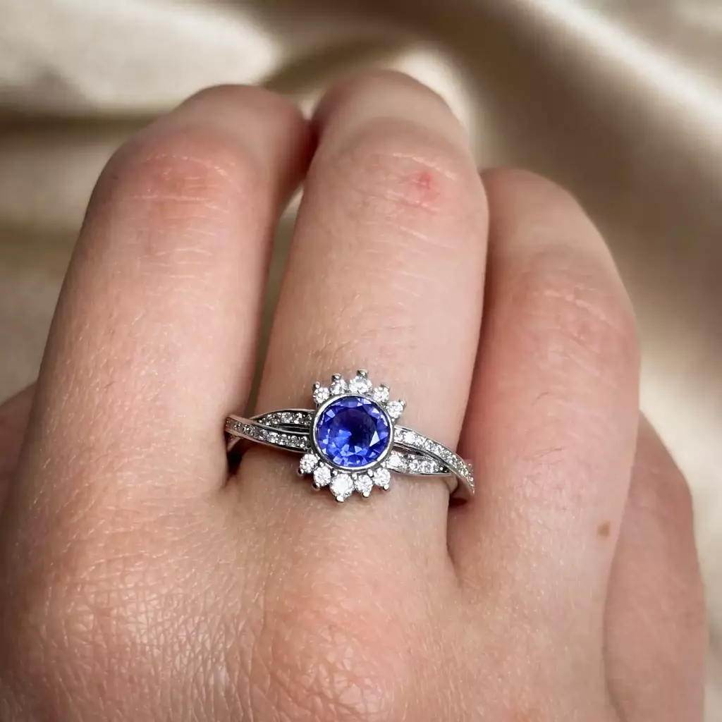 Anillo Scanno: Esta exquisita joya confeccionada en plata rodinada, que garantiza un brillo duradero y una resistencia superior al desgaste. Su diseño entrelazado presenta un delicado halo de mini circones baguette que rodean la pieza, aportando un sutil destello que realza cada movimiento. En el centro, una piedra violeta cuidadosamente engarzada aporta un toque de color único y refinado.