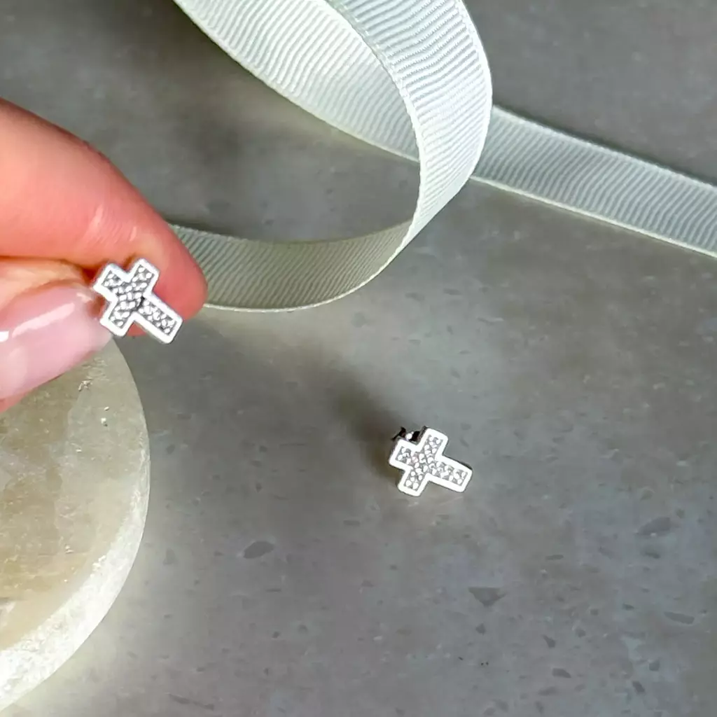 Aros Ivrea: Confeccionados en plata 925 de alta calidad. Estos aros fijos presentan un diseño de cruz delicadamente adornado con strass que capturan la luz y aportan un brillo irresistible a tu look. Su cierre mariposa garantiza comodidad y seguridad durante todo el día. Cuentan con un acabado pulido impecable.
